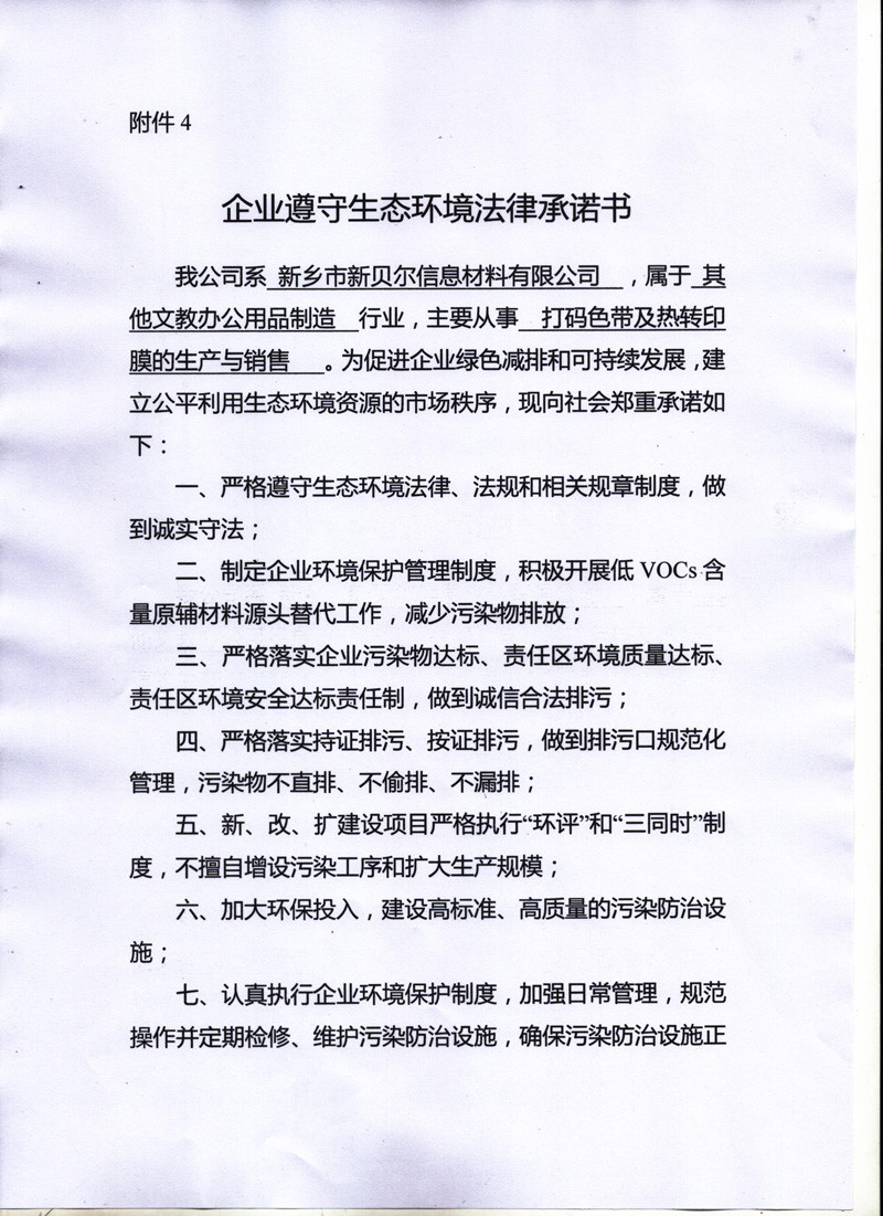 遵守環(huán)境生態(tài)法承諾書
